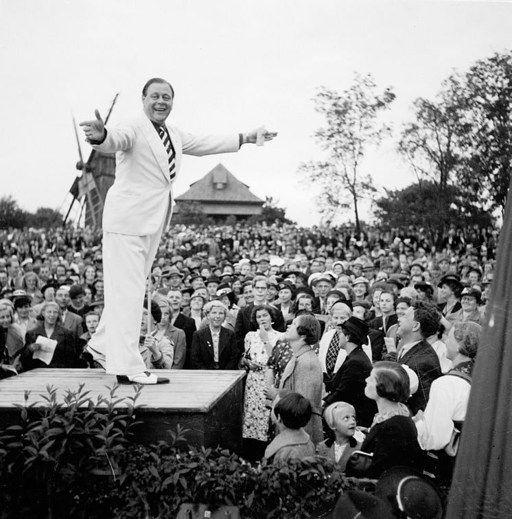 Sven Lilja i publikhavet vid allsången på Skansen 1938.